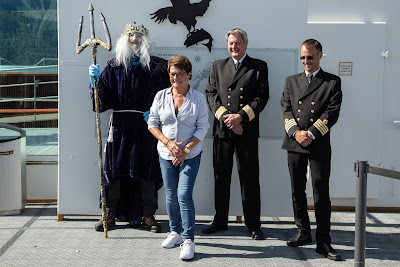 Mellom Ørnes og Bodø fekk vi besøk av havguden Njord som døypte frivillige passasjerar med isbitar og isvatn som han ausa ned med kragen. Ei av passasjerane feira og 70 årsdagen der til stor jubel frå dei andre passasjerane. Artige innslag.